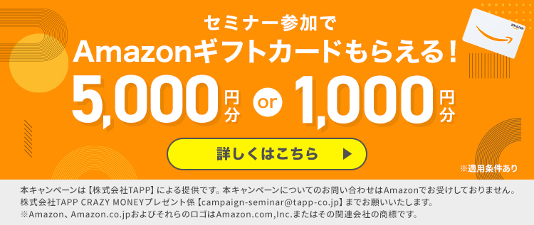 ※本キャンペーンは【株式会社TAPP】による提供です。本キャンぺーンについてのお問い合わせは Amazonではお受けしておりません。 株式会社TAPP プレゼント係【campaign-seminar@tapp-co.jp】までお願いいたします。