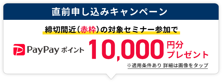 お渡し条件を満たしていることが確認できた方全員に、セミナー受講後3週間程度で、メールにてPayPayポイントコードをお送りいたします。